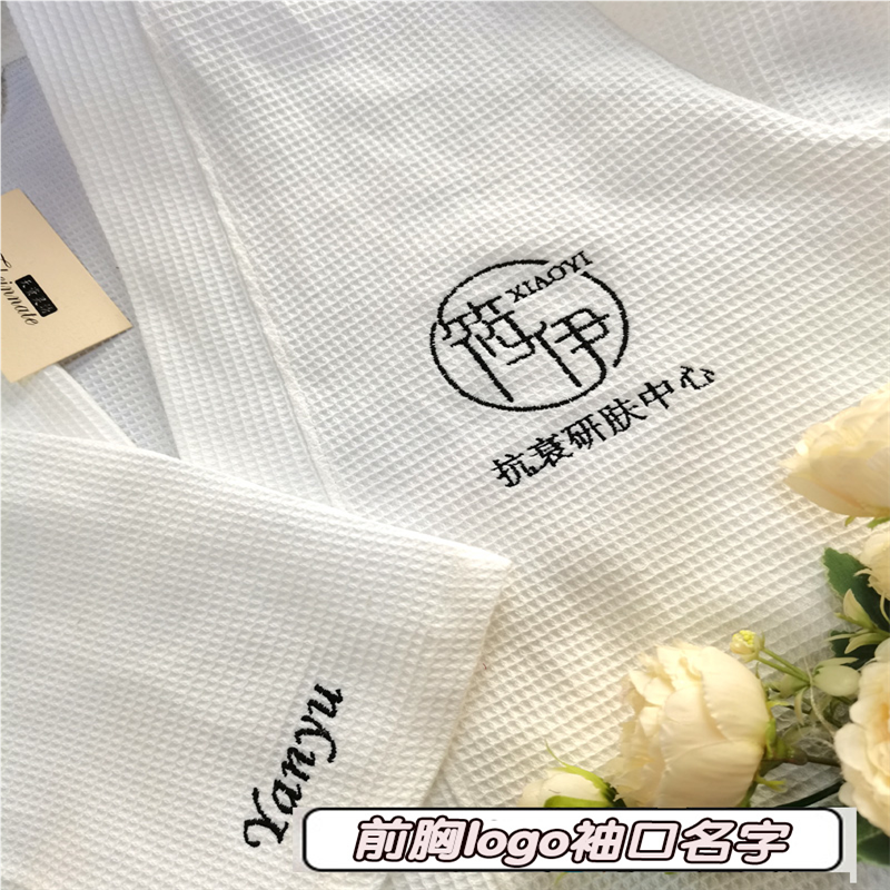 浴袍VIP美容减肥瘦身SPA春秋冬季纯棉华夫格浴袍刺绣LOGO客人名字