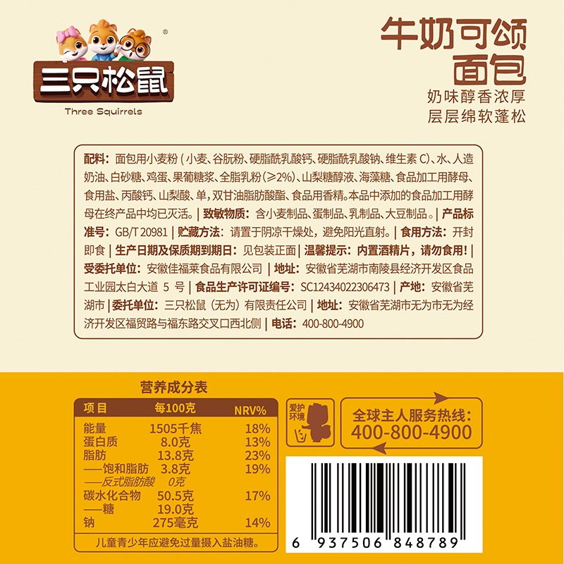 您的位置: 三只松鼠牛奶可颂面包牛角包休闲零食糕点代餐