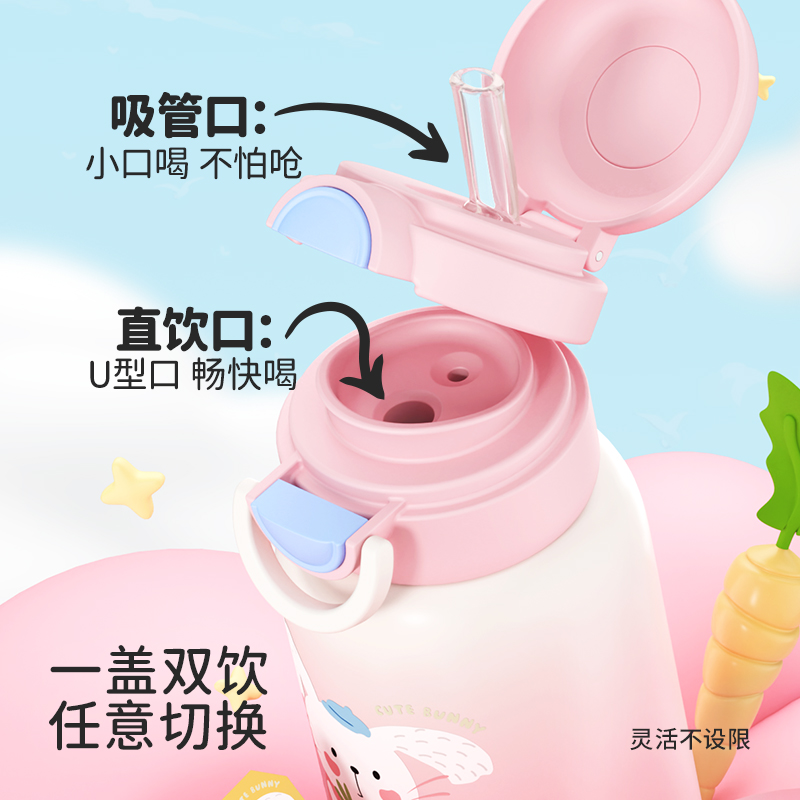 > 哈尔斯儿童保温杯女生高颜值双饮学生上学专用杯子女吸管水杯