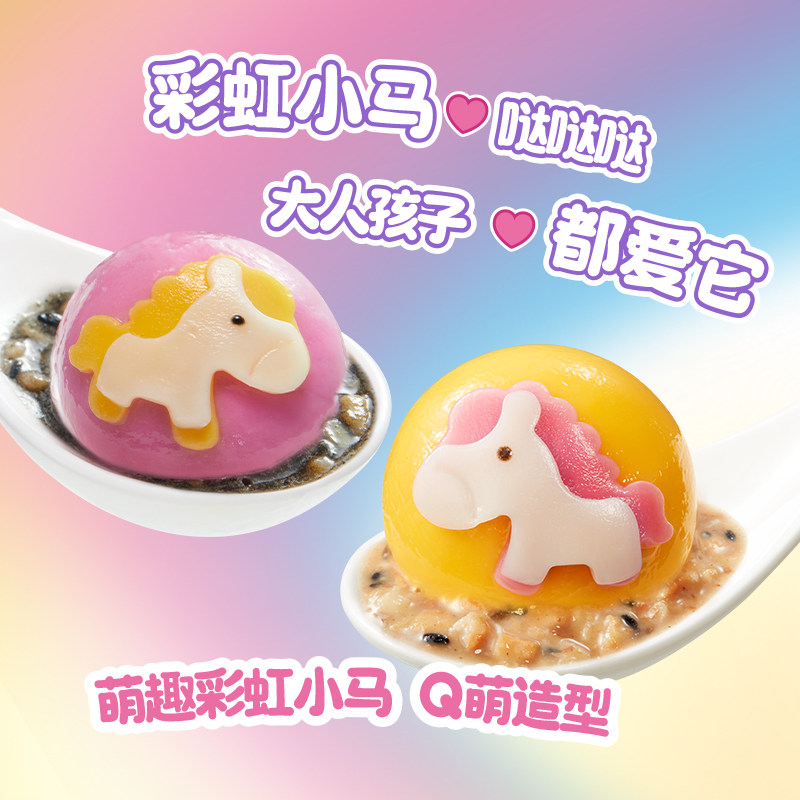 > 【秒杀】三全彩虹小马3D造型汤圆黑芝麻味花生水果草莓樱花汤圆