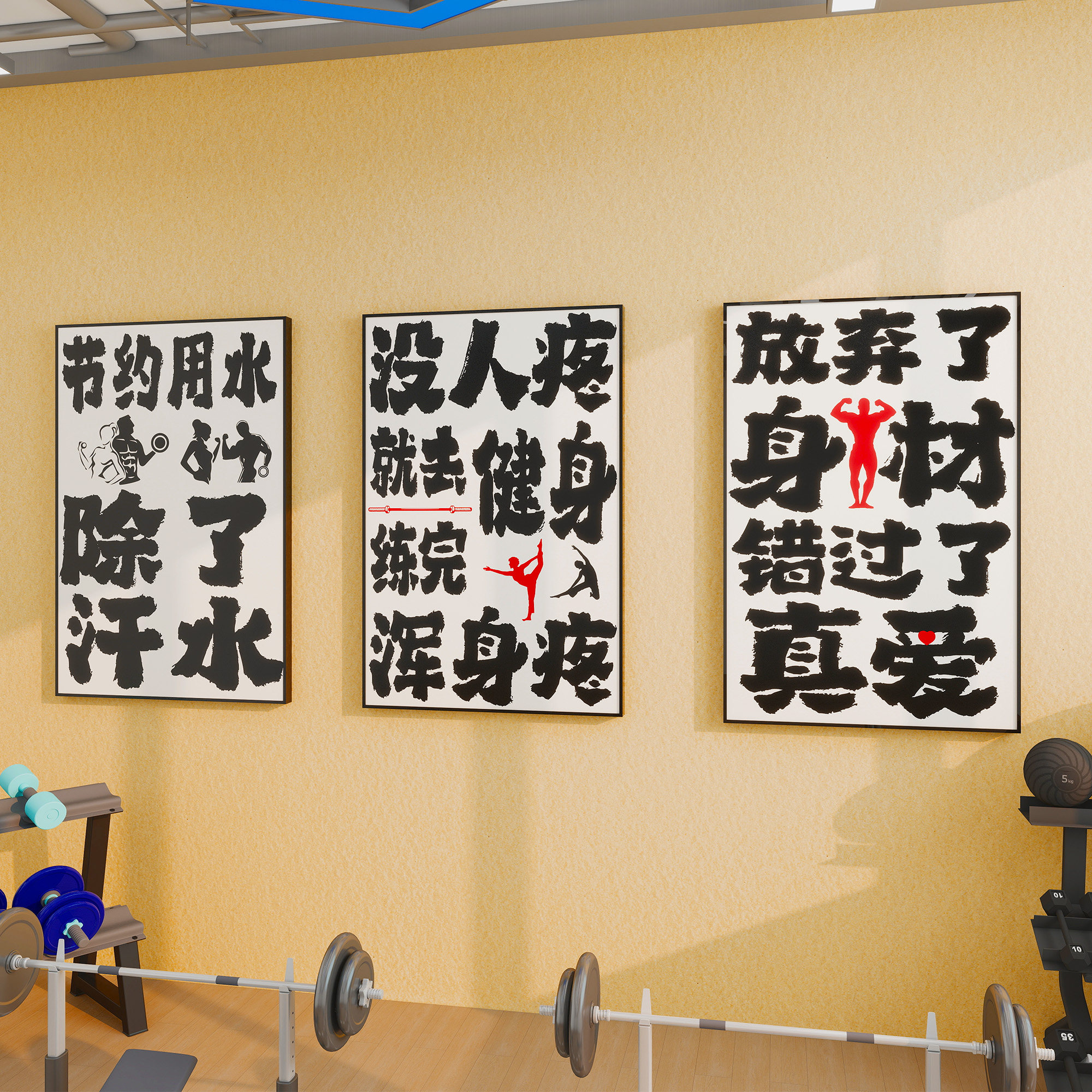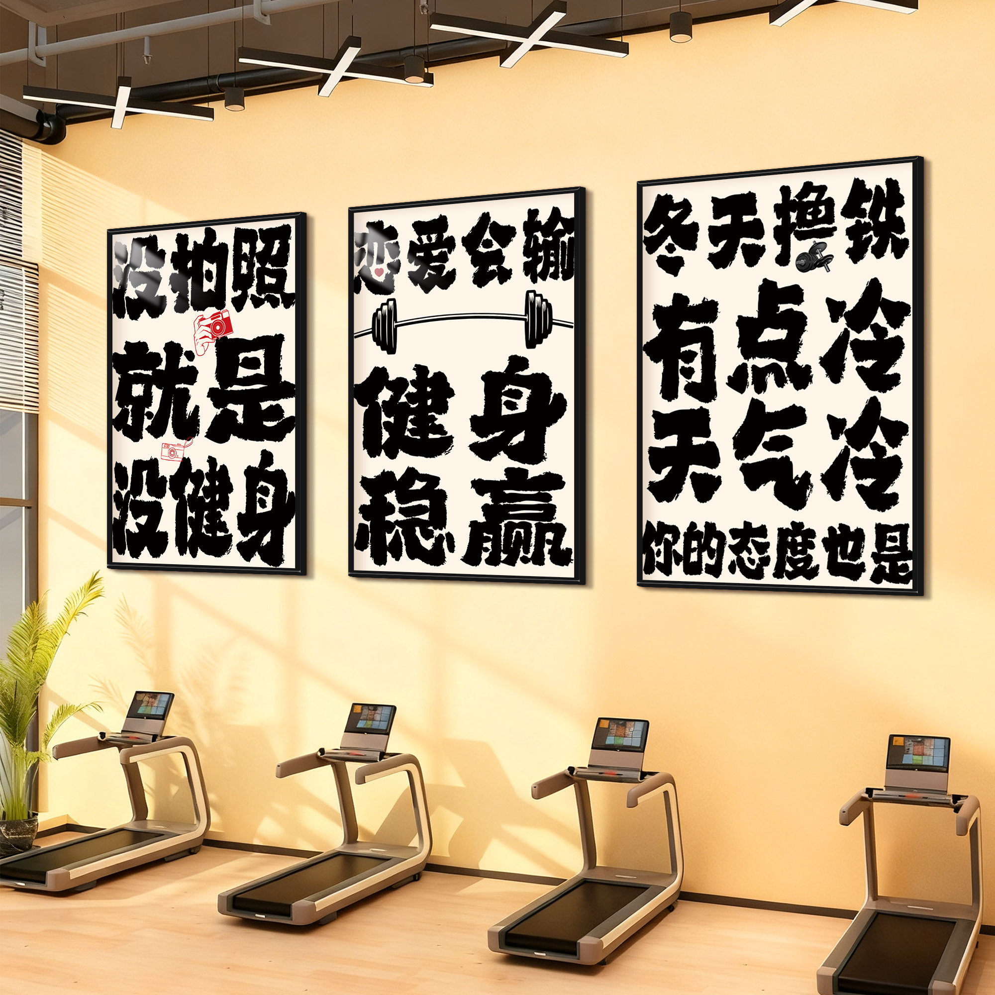 淘宝天猫健身房墙面装饰画减肥瘦身氛围背景墙布置运动自律打卡海报壁画纸优惠券折扣价格–彩云间
