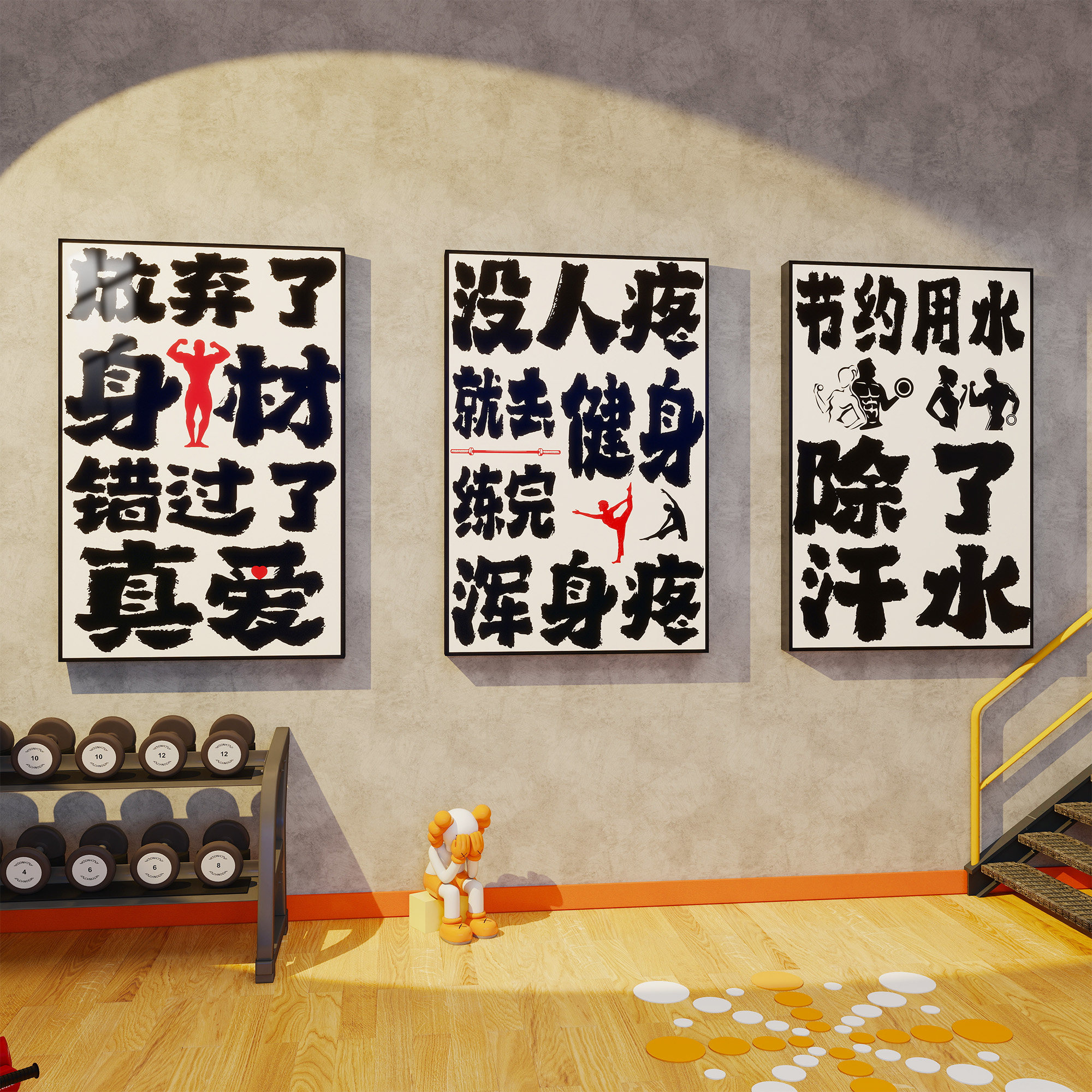 健身房墙面装饰画减肥瘦身氛围背景墙布置运动自律打卡海报壁画纸