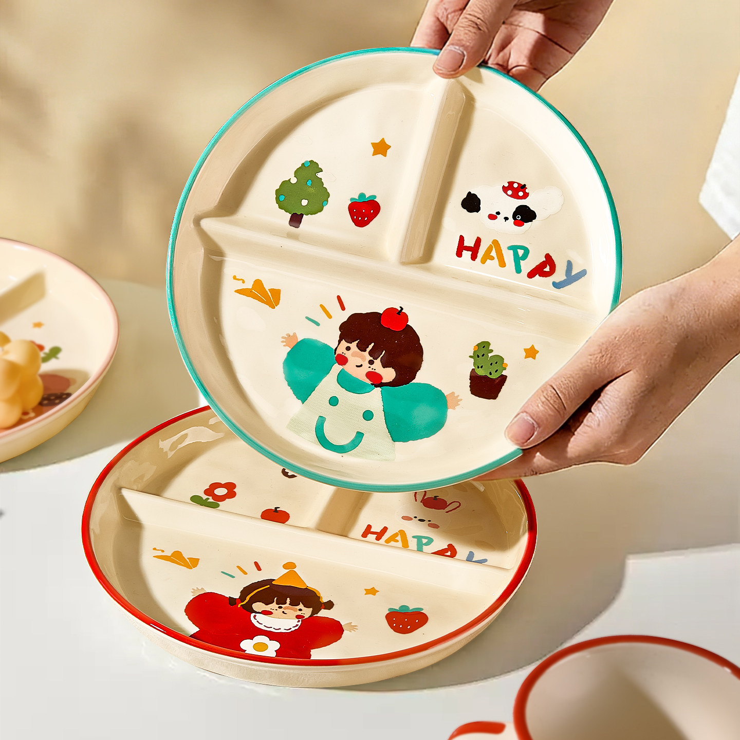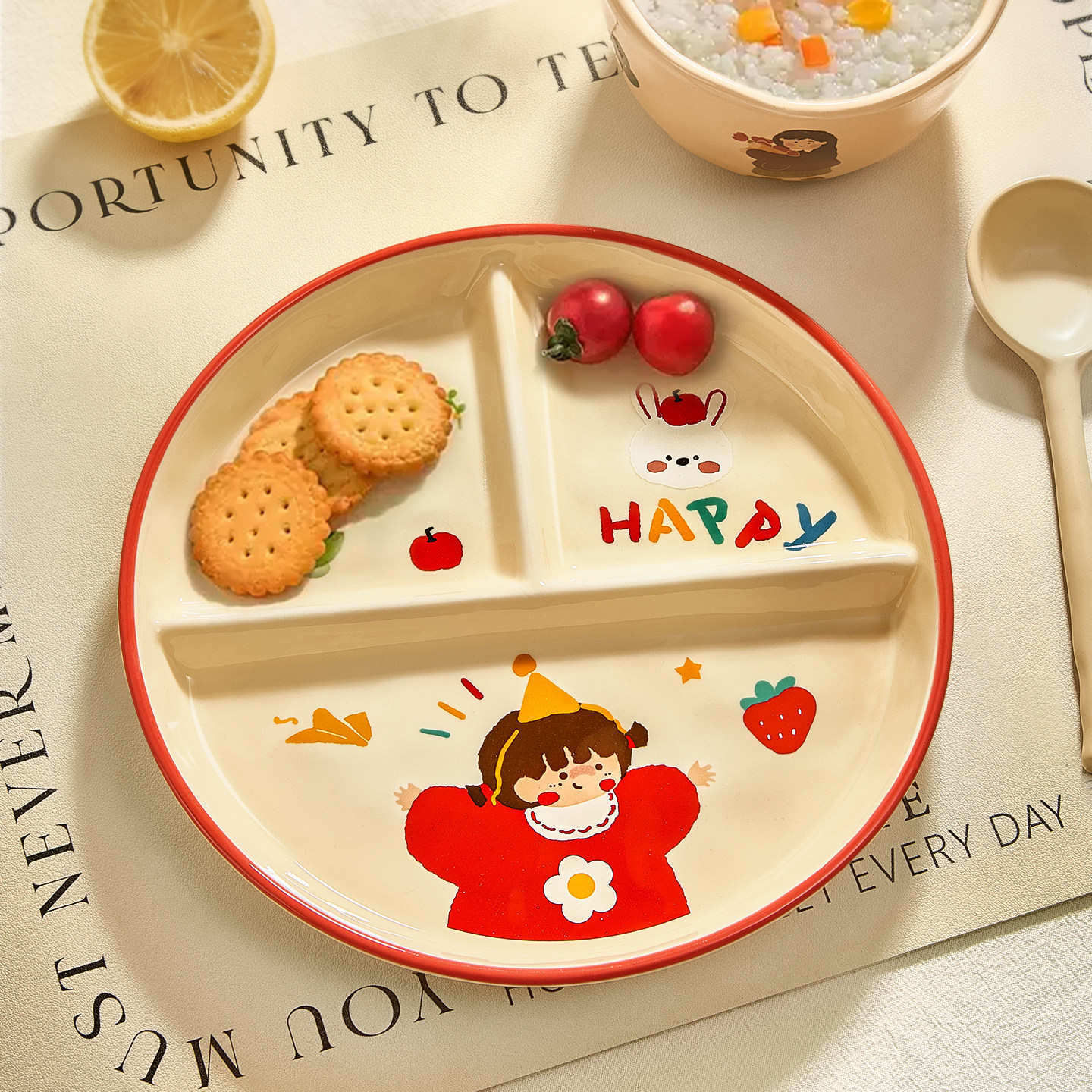 211减脂餐盘减肥定量儿童分餐盘陶瓷分格餐具大人家用水果早餐盘