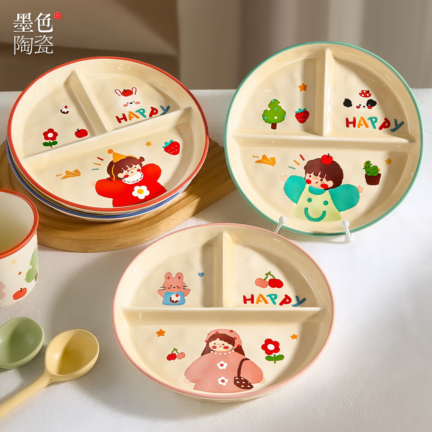 淘宝天猫211减脂餐盘减肥定量儿童分餐盘陶瓷分格餐具大人家用水果早餐盘优惠券折扣价格–彩云间