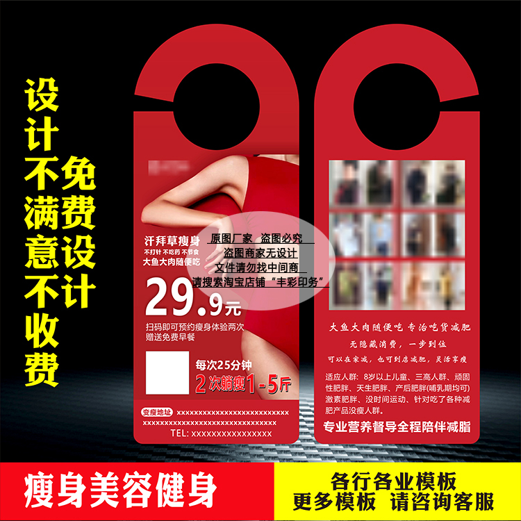 淘宝天猫汉佰草良咔瘦身减肥宣传单页拓客挂门卡锁广告体验卡定制印刷双面优惠券折扣价格–彩云间