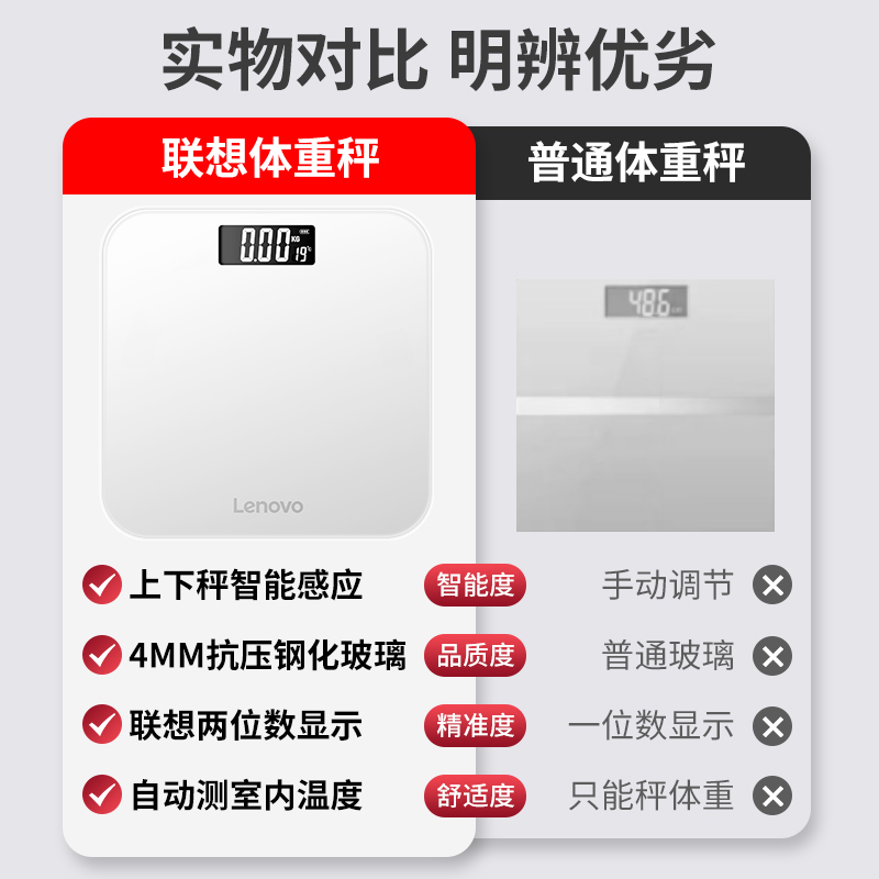 Lenovo/联想电子秤体重称家用计家庭耐用精准小型减肥专用人体秤