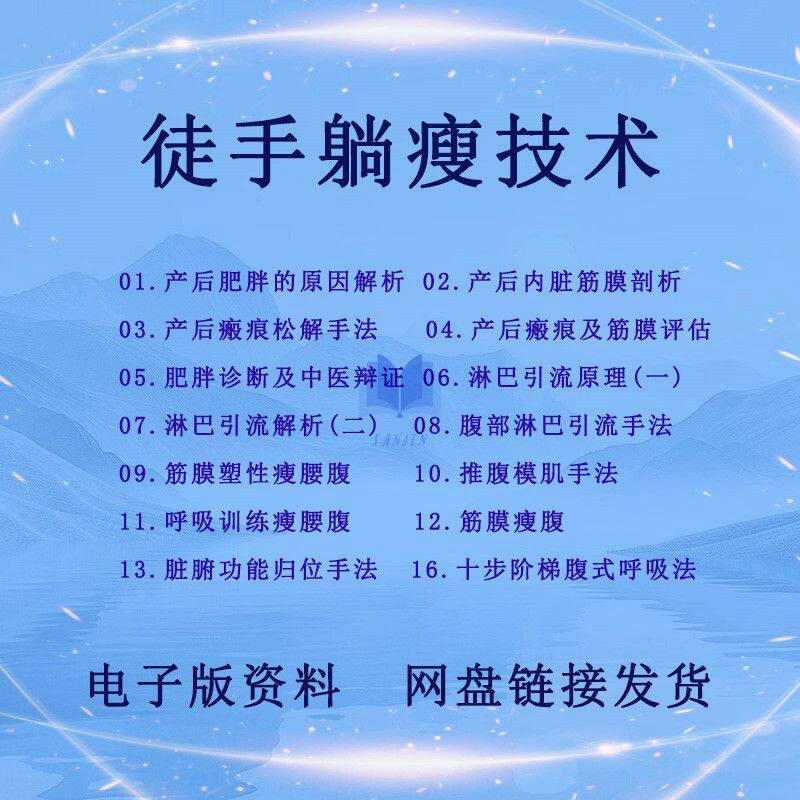 中医躺瘦课程手法减肥视频产后内脏筋膜徒手淋巴引流腹部按摩推拿