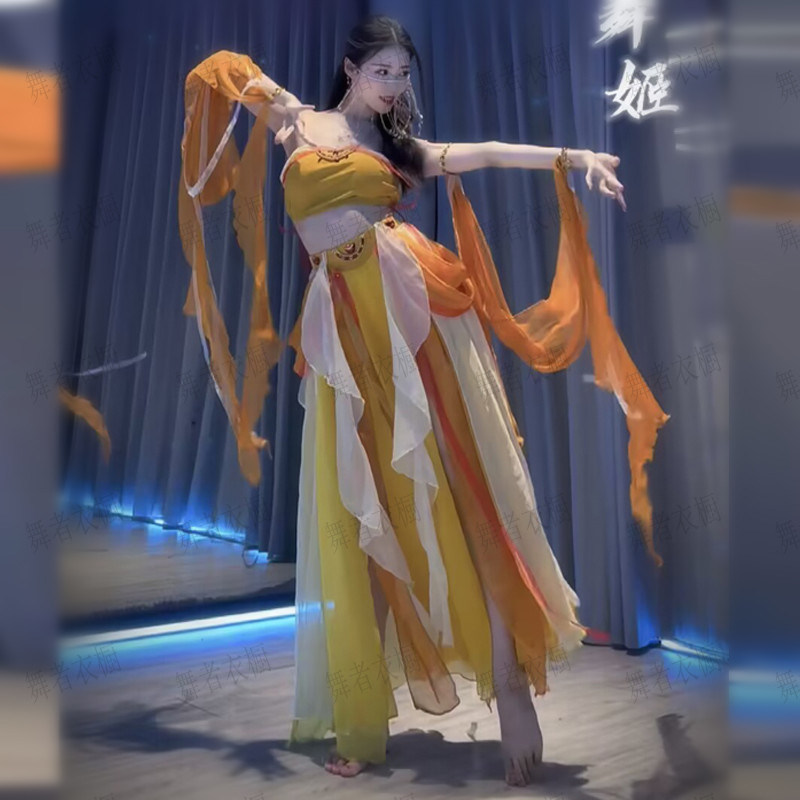 敦煌飞天异域风舞蹈服披帛古典舞月下舞姬演出服舞蹈主播服装性感