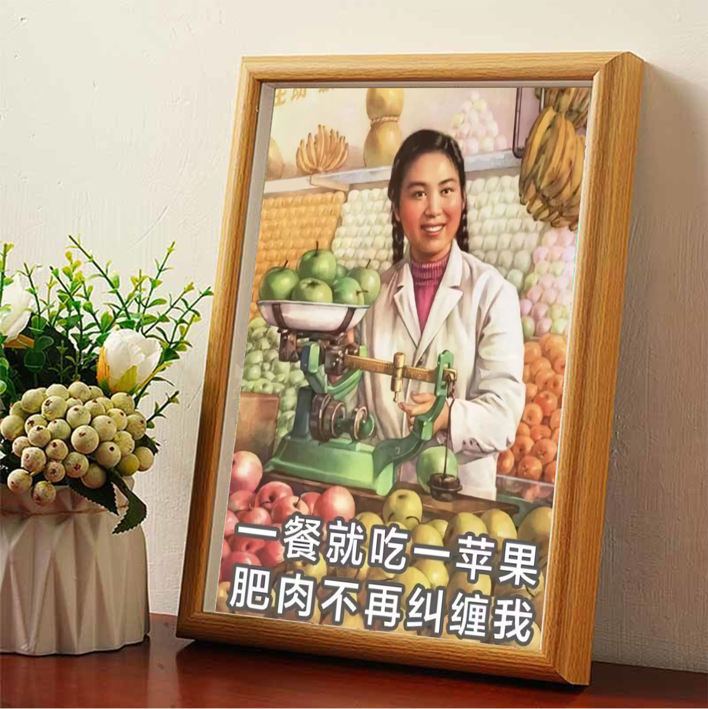 肥肉不再纠缠我减肥励志搞笑实木相框装饰画桌面摆件艺术画挂墙