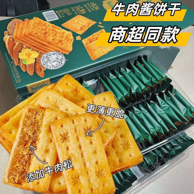 2箱牛肉酱双层脆牛肉松夹心陷饼干薄脆香酥网红休闲解馋零食整1箱