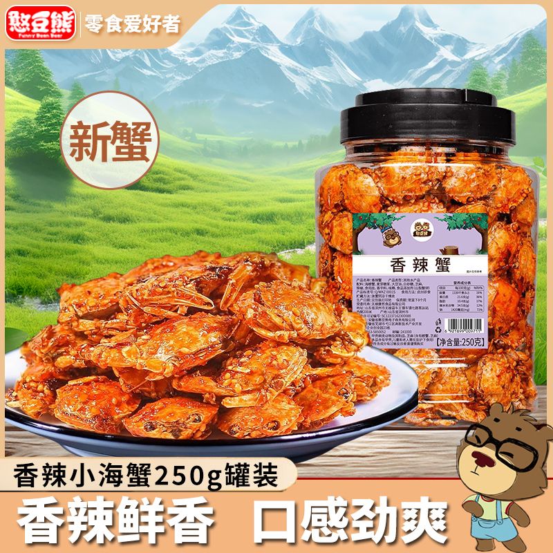 您的位置: 憨豆熊香辣小海蟹250g罐装小螃蟹即食童年怀旧零食海味特产下酒菜