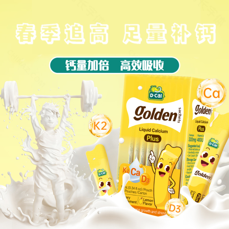 【拍2叠消费券+金币折85/盒】,迪巧宝宝液体钙小黄条plus儿童补钙维生素d3k2柠檬酸钙温和易吸收