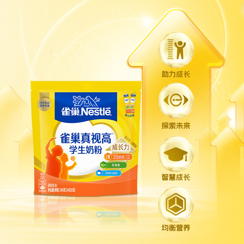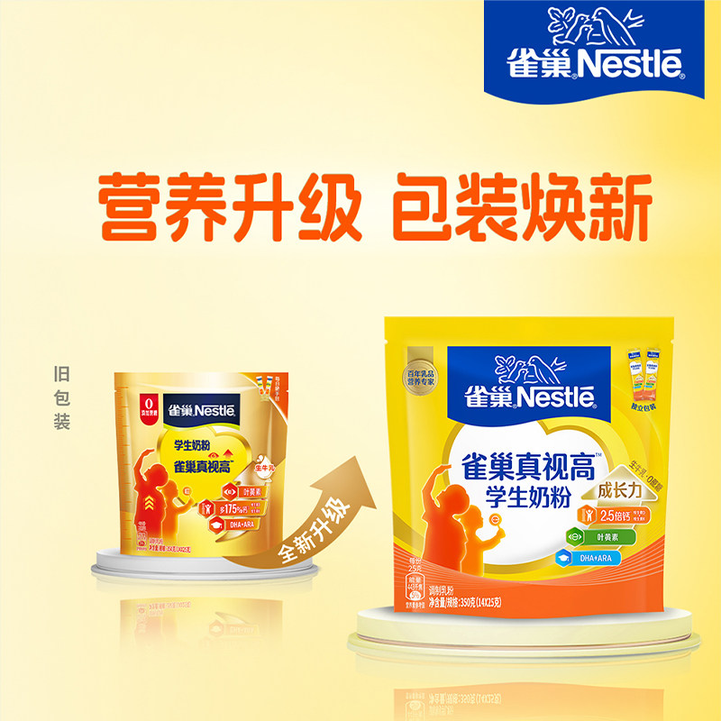 > 雀巢学生真视高牛奶粉脑力加油站6-15岁350g*2袋成长营养DHA