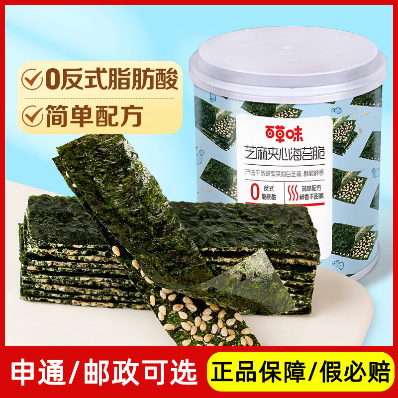 您的位置: 减肥解馋小零食0脂肪0卡0反式脂肪酸无糖无添加剂非油炸芝麻夹心海苔脆紫菜海苔碎即食孕妇儿童营养高钙网红女神休闲追剧夜宵小吃