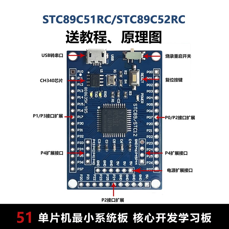 51单晶片系统板 LQFP44最小系统板 STC89C52RC核心板开发板学习板