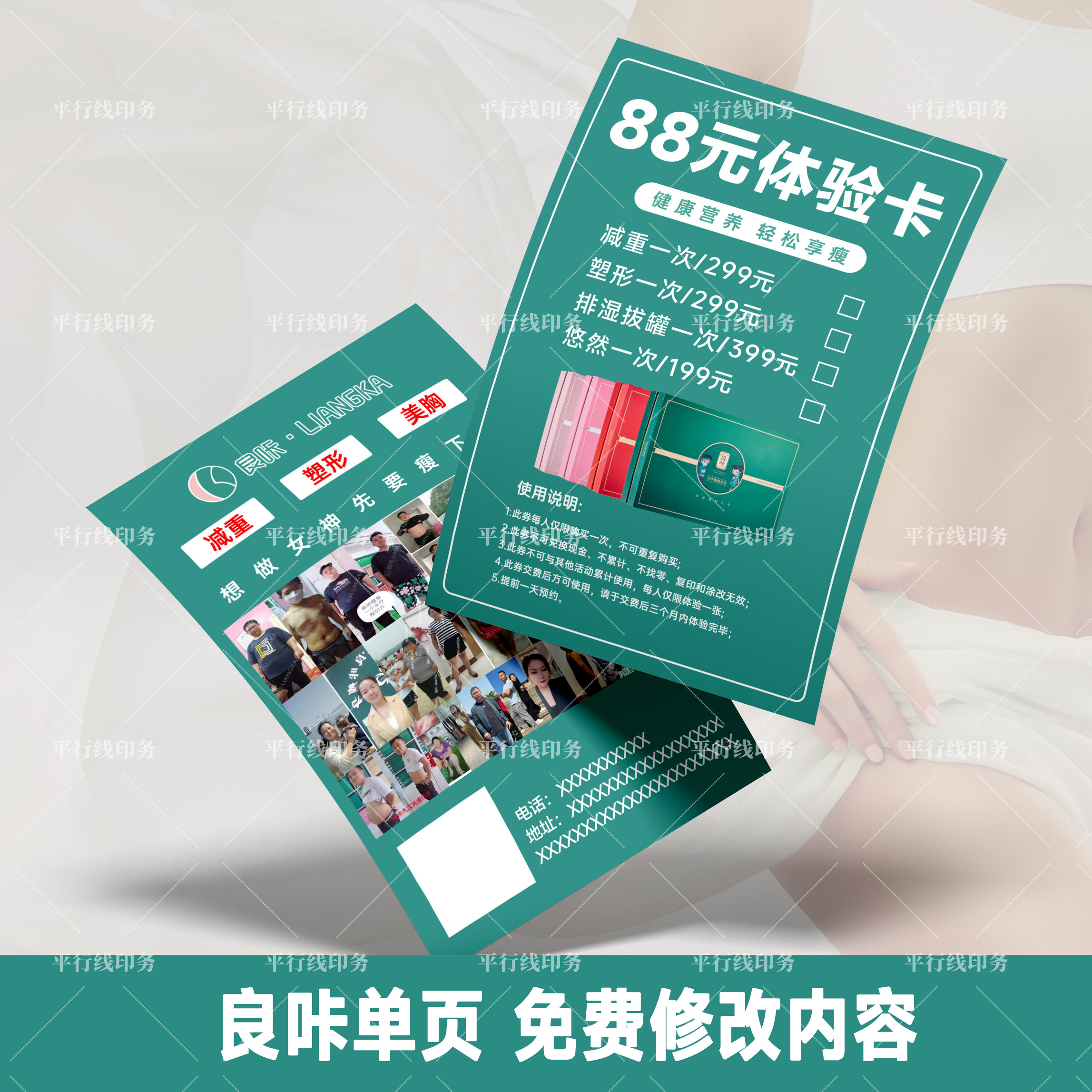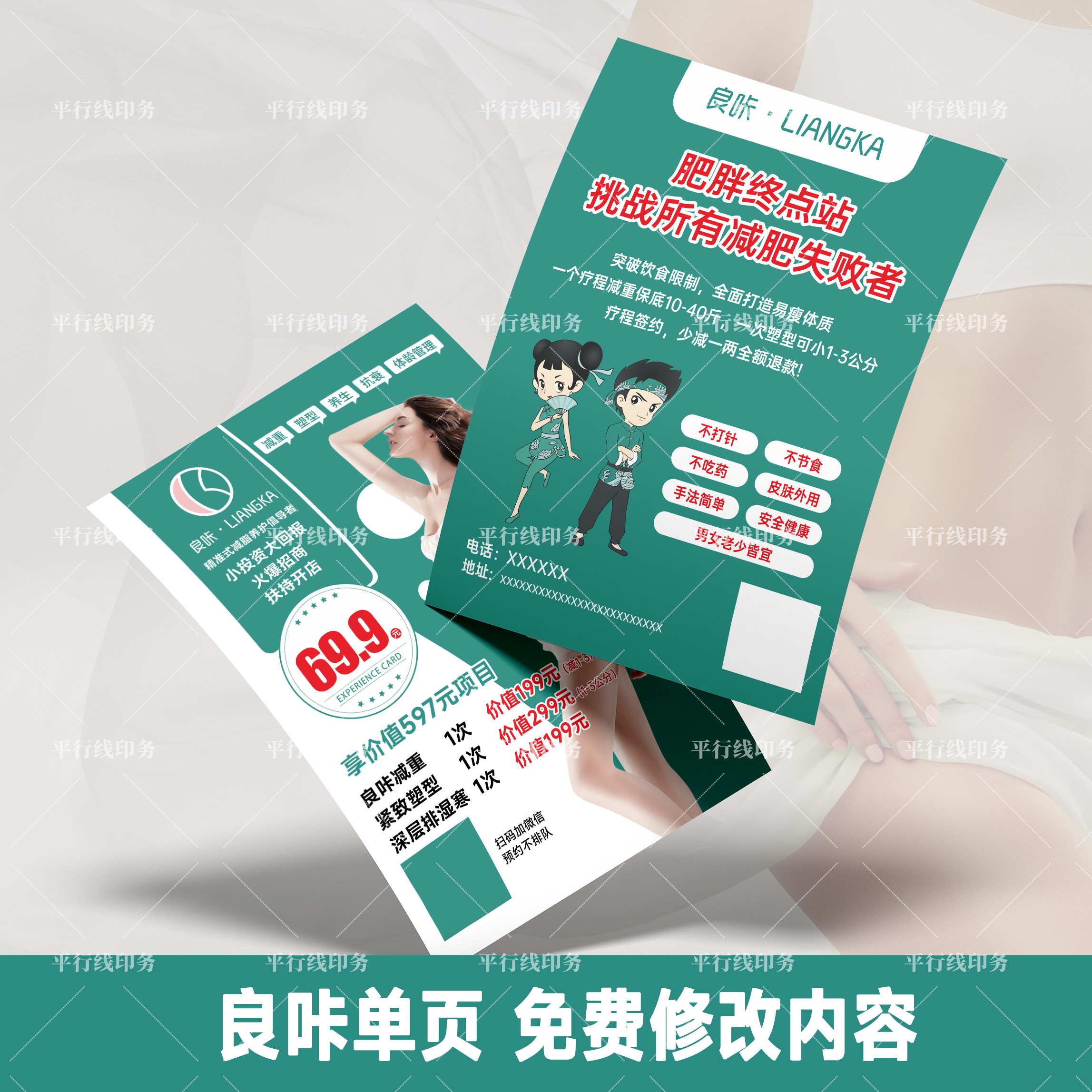 淘宝天猫良咔瘦身开业传单减重减脂减肥拓客体验活动特惠单页定制印刷双面优惠券折扣价格–彩云间