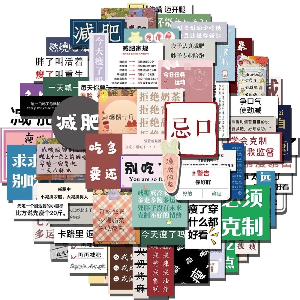 201张励志减肥自律ins风文字贴纸趣味简约手机壳电脑墙面防水贴画