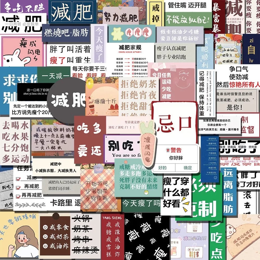 淘宝天猫201张励志减肥自律ins风文字贴纸趣味简约手机壳电脑墙面防水贴画优惠券折扣价格–彩云间