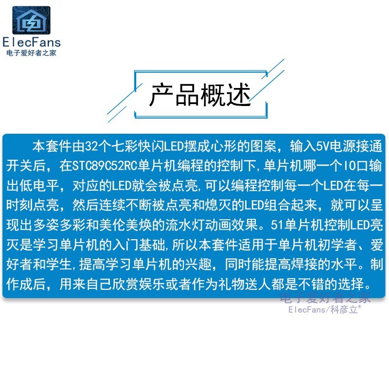 (散件)七彩炫光花样闪烁心形流水灯51单片机STC89C52RC电子板套件
