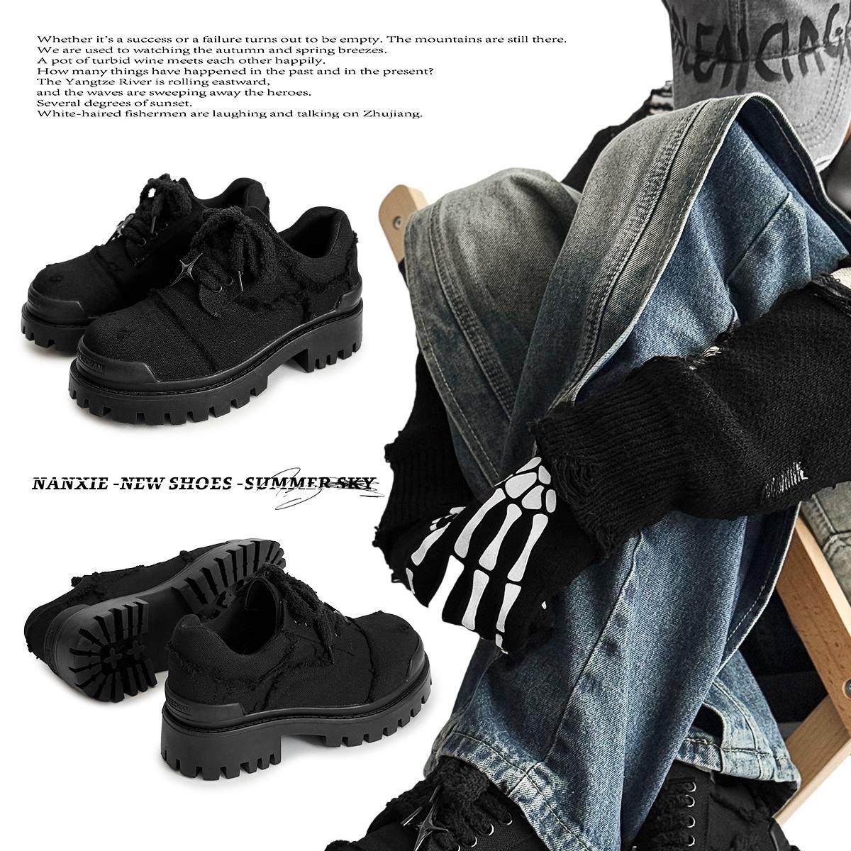 您的位置: 南写NANXIE 小众四芒星德比鞋牛仔布料破坏大头鞋厚底工装休闲鞋