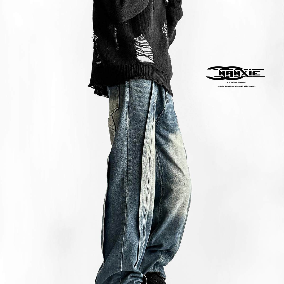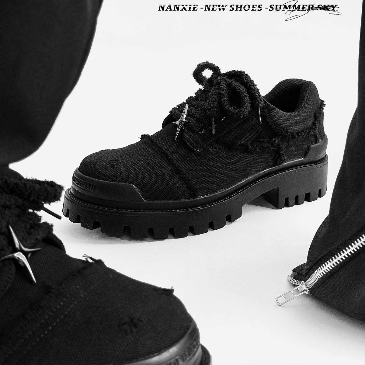 南写NANXIE 小众四芒星德比鞋牛仔布料破坏大头鞋厚底工装休闲鞋