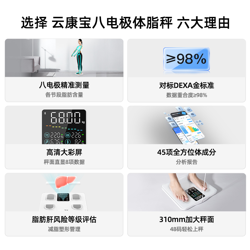 您的位置: 云康宝八电极体脂秤减肥专用体重秤智能精准电子称体测率测量仪器