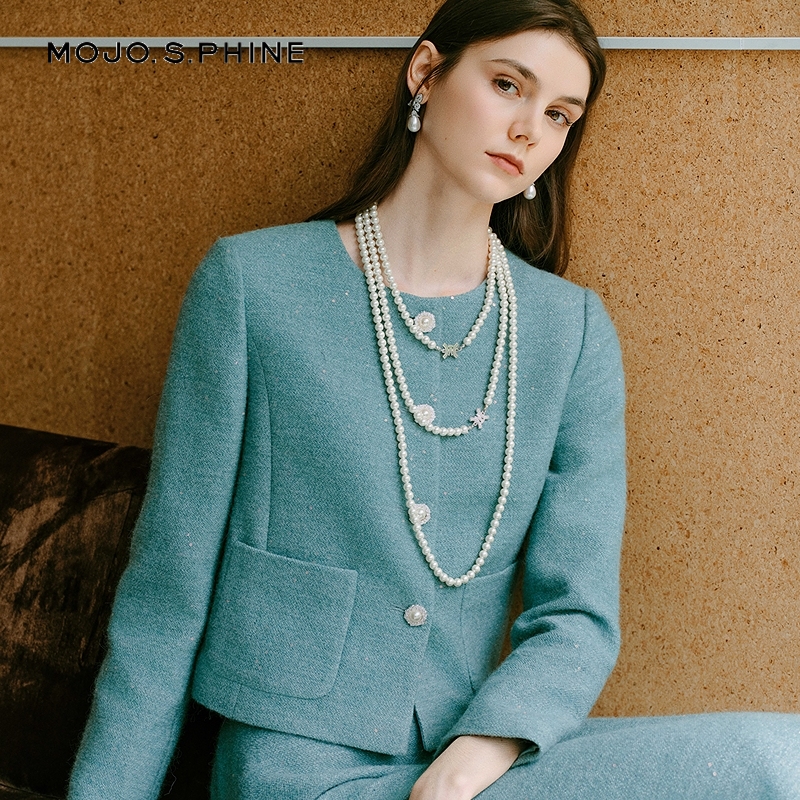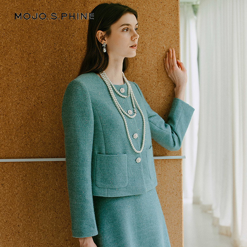 您的位置: MOJO莫佐2025新款法式气质香风套装女秋冬薄荷绿箱型短外套上衣