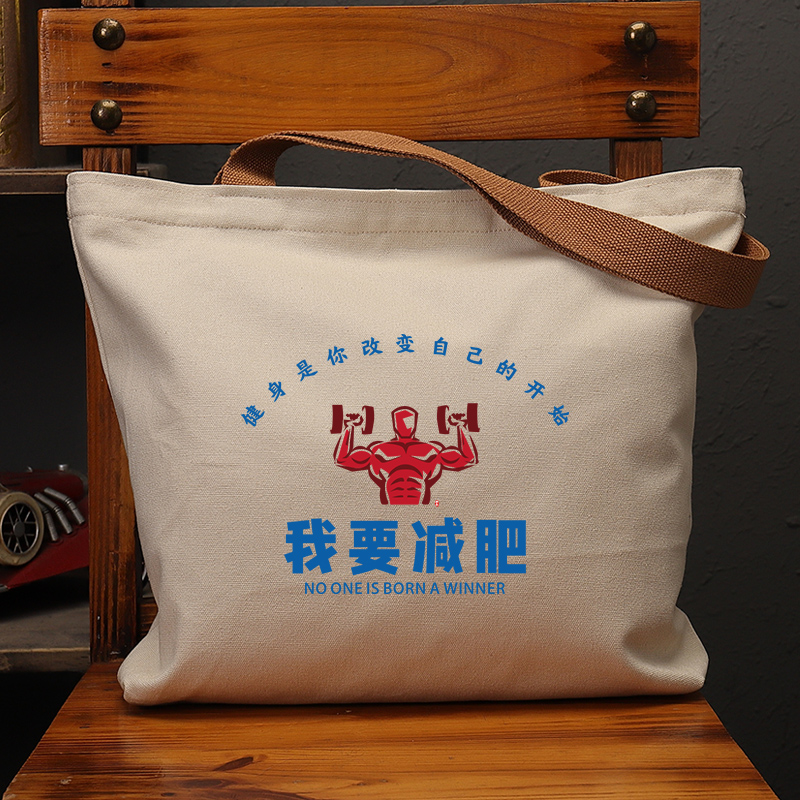 您的位置: 我要减肥国潮文字帆布袋女大容量上班通勤单肩包手提环保购物袋男