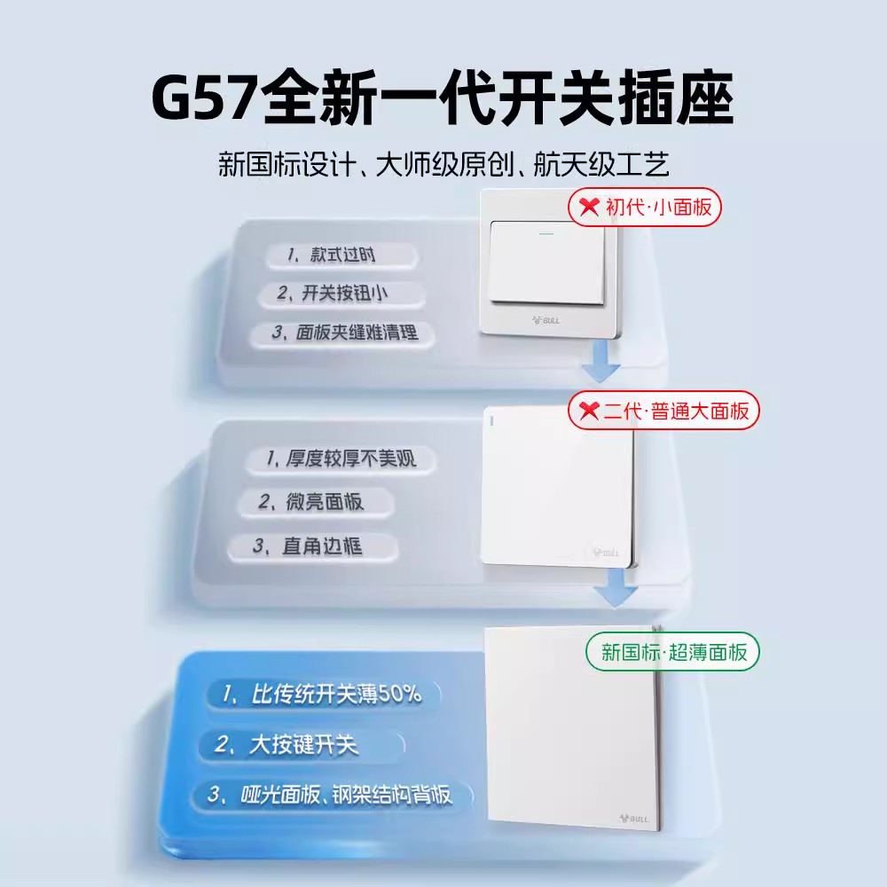 公牛开关插座G57暮雪白86型超薄面板五孔16a家用墙面暗装哑光白