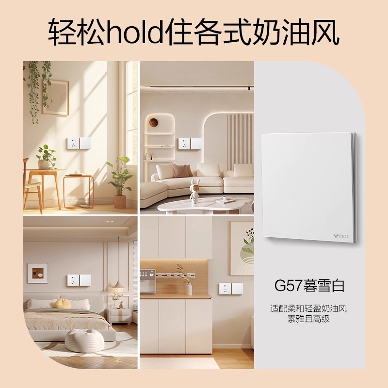 您的位置: 公牛开关插座G57暮雪白86型超薄面板五孔16a家用墙面暗装哑光白
