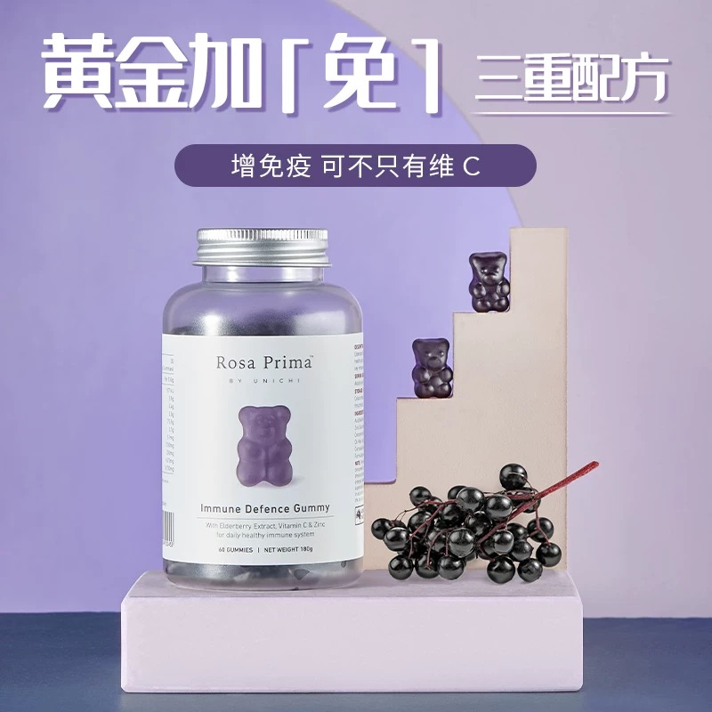您的位置: Unichi黑接骨木莓免疫力小熊软糖成人儿童维生素C补锌抵抗力60粒