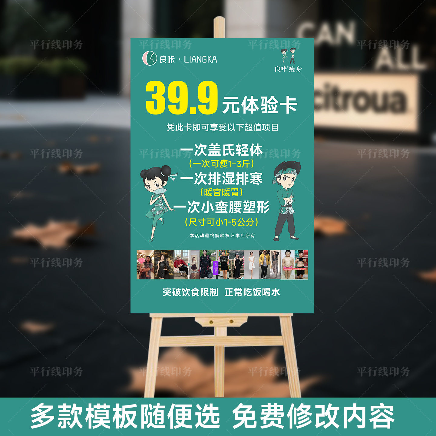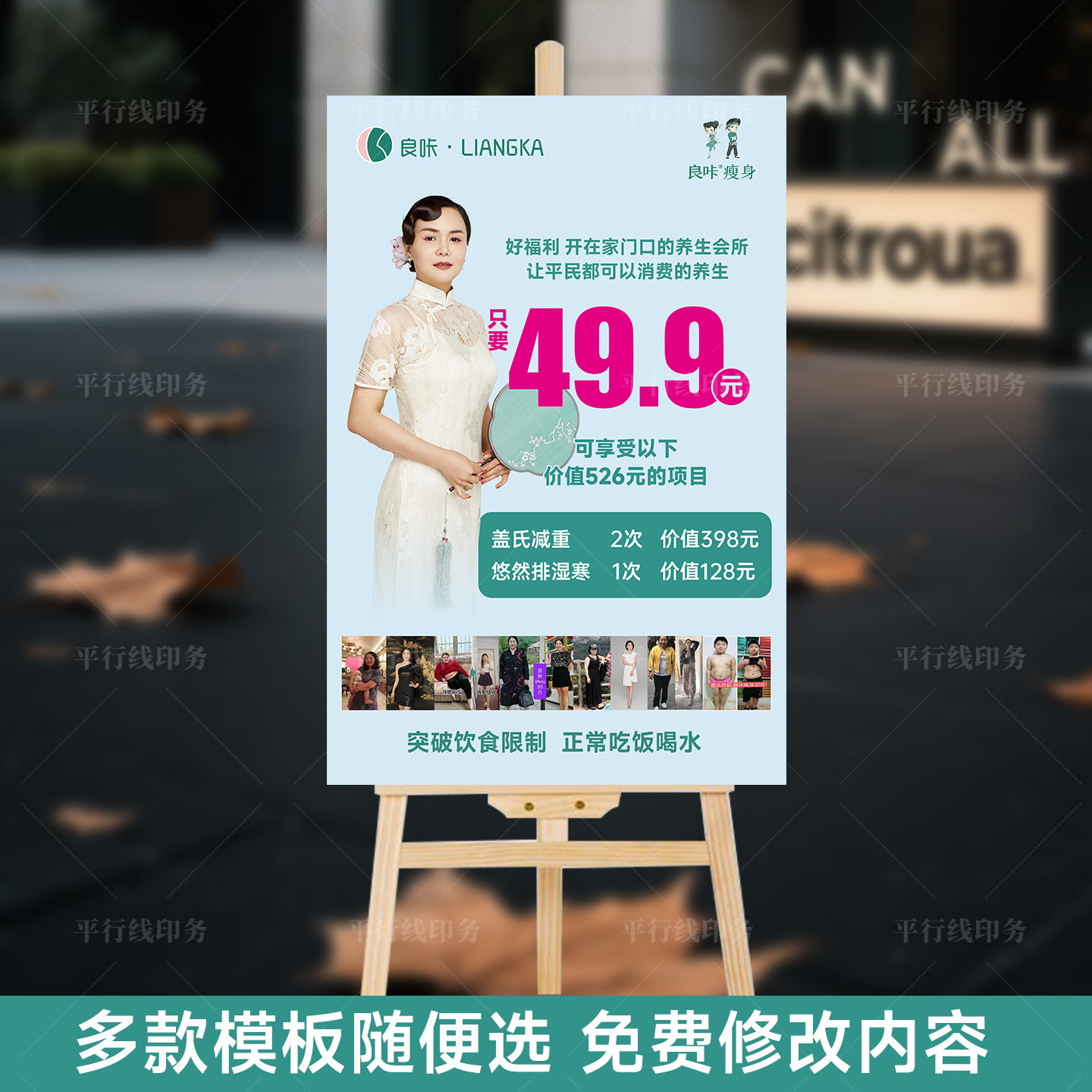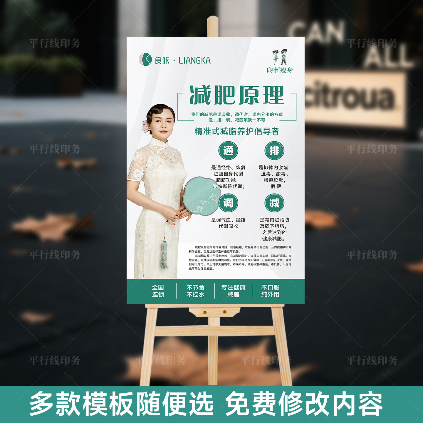 您的位置: 良咔减肥活动海报宣传画瘦身塑型展示木架子美容养生定制广告设计