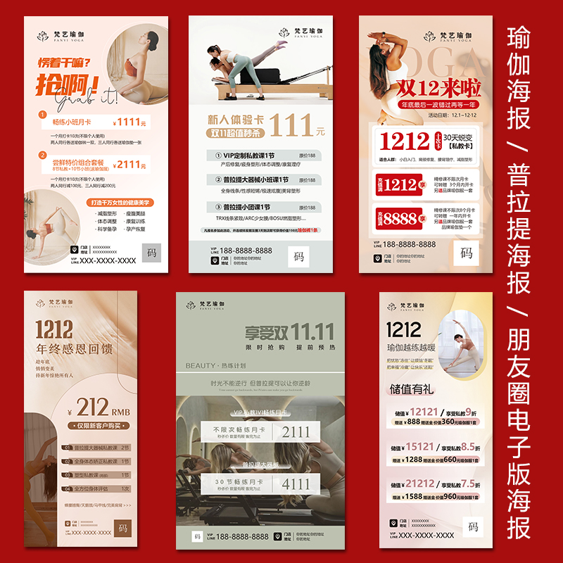 双十一瑜伽馆活动海报设计印刷双12普拉提塑形减肥推广海报电子版