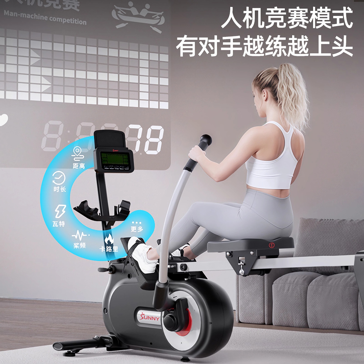 美国SUNNY双桨划船机家用健身器材室内减肥静音可折叠锻炼肩颈背