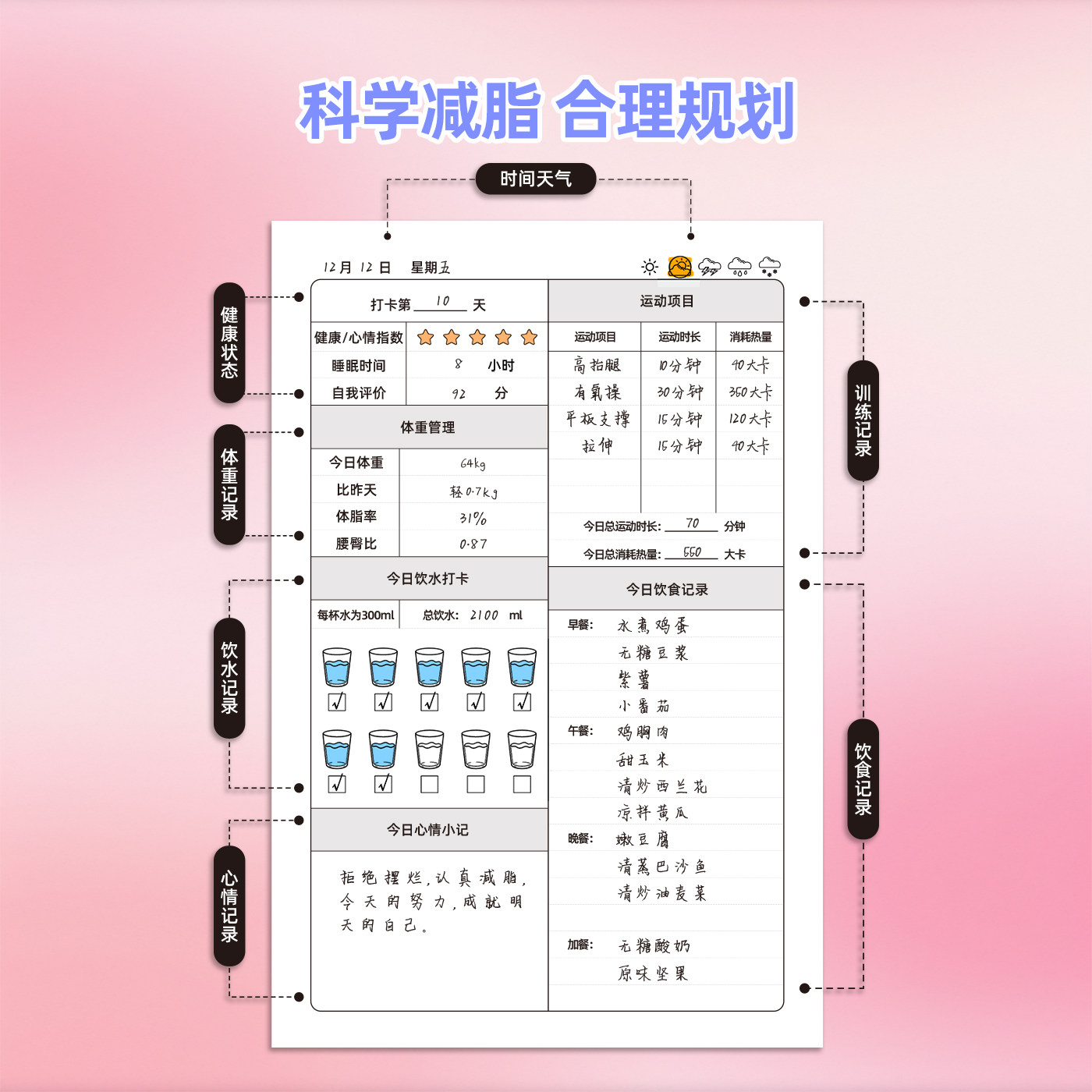 【减到80斤】健身训练100天减肥计划本自律减脂减肥打卡计划本