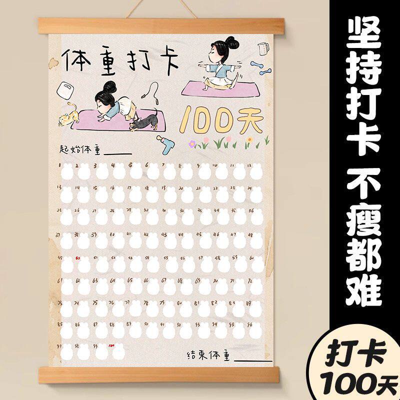 淘宝天猫春天减肥打卡表100天挂画记录励志激励减重30天装饰实木挂轴客厅优惠券折扣价格–彩云间