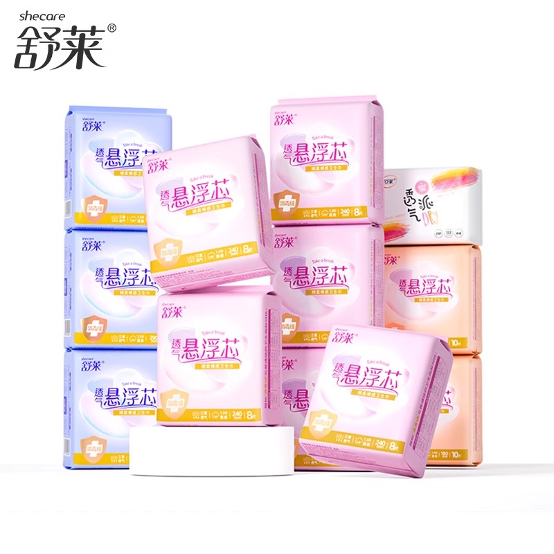 > 医护级舒莱卫生巾抑菌超薄透气悬浮芯防漏姨妈巾日夜用组合装整箱