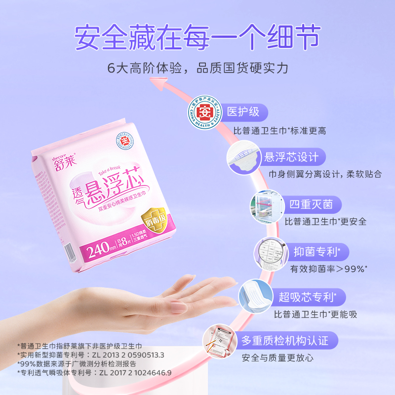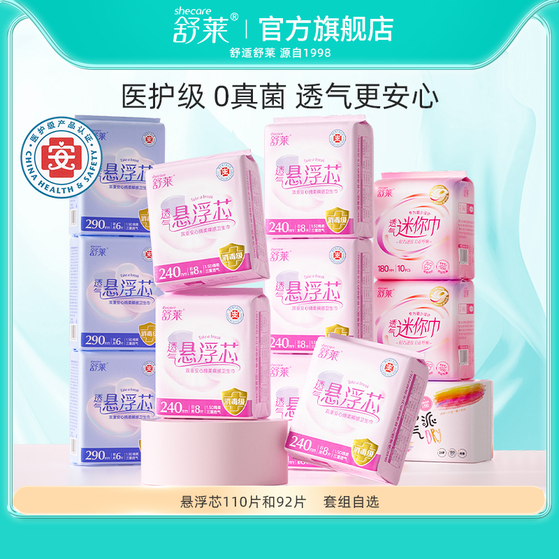 医护级舒莱卫生巾抑菌超薄透气悬浮芯防漏姨妈巾日夜用组合装整箱