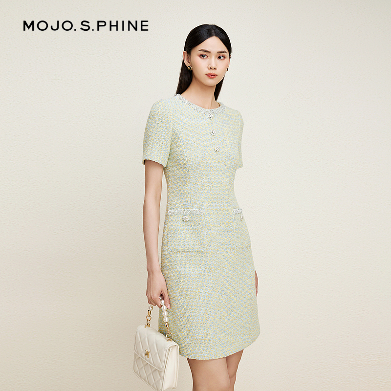 > 【林小宅同款】MOJO莫佐森林丁达尔小香风2024新款千金感连衣裙