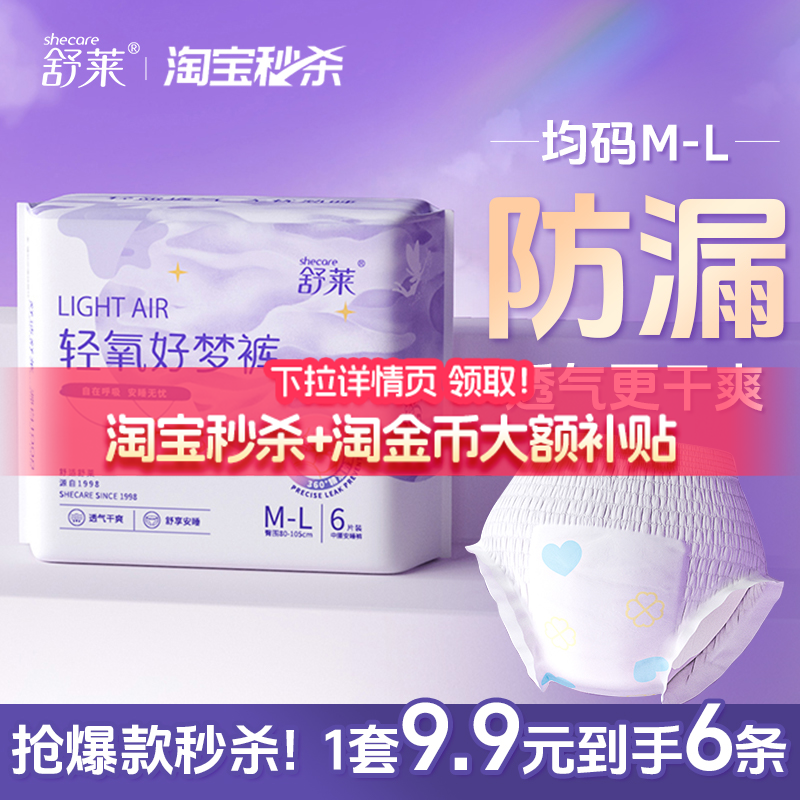 > 舒莱新品上市防漏安睡裤日用夜用透气超薄裤型卫生巾1包6条姨妈巾