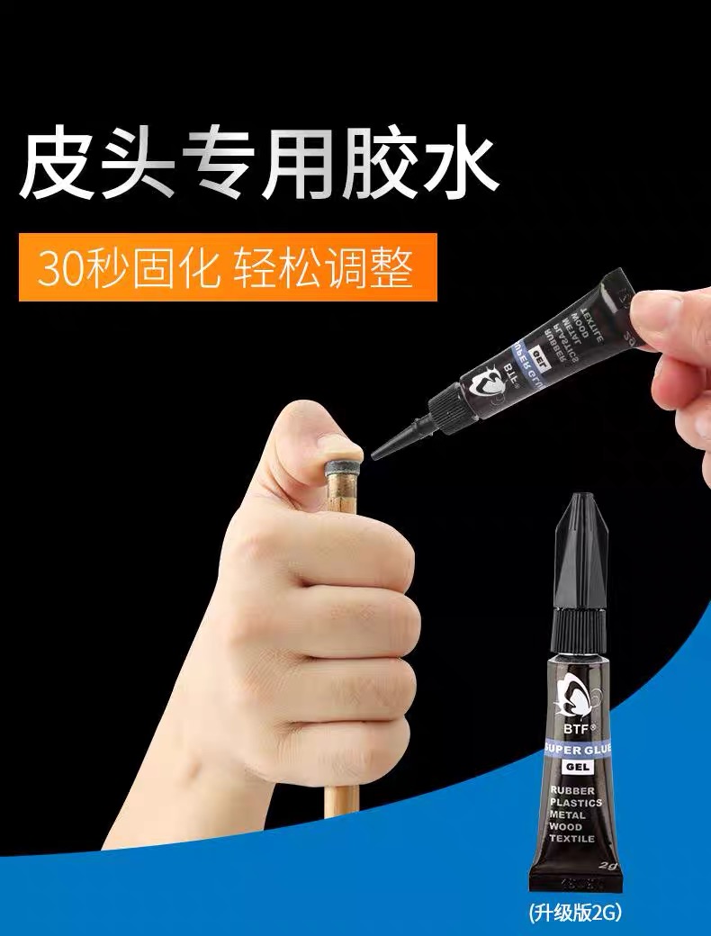 BTF蝴蝶台球杆专用胶水啫喱瞬间胶粘皮头小头杆中头杆大头杆通用