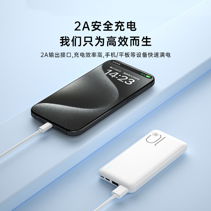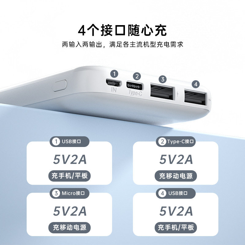 > 3c认证便携式充电宝 5V2A多口10000毫安1W超大容量轻薄移动电源