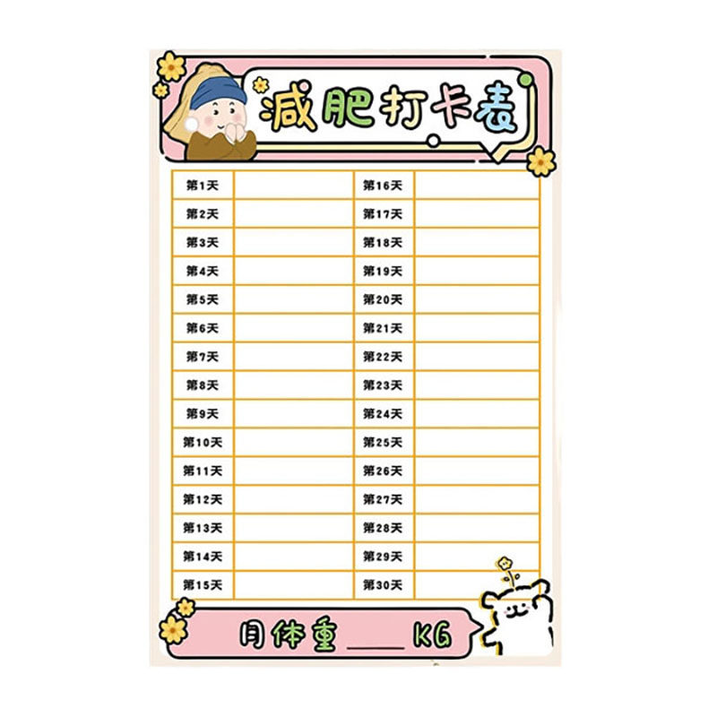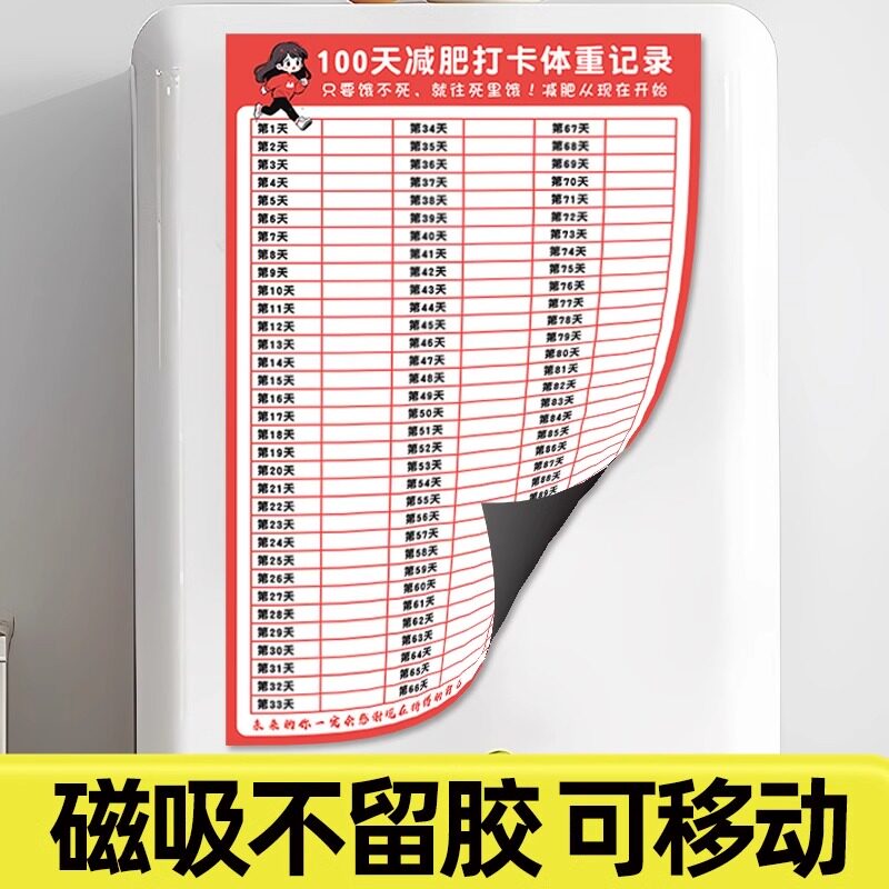 您的位置: 减肥打卡记录表体重表60天冰箱磁性贴运动自律神器100天30天计划表墙贴一个月饮食打卡规划目标每日任务表