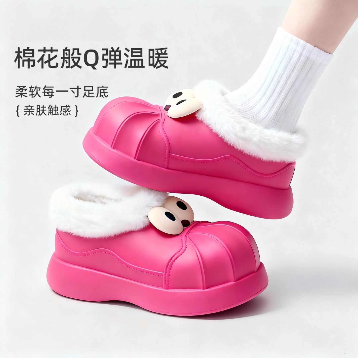 > 毛绒雪地靴女士冬季新款时尚家居厚底加绒保暖可爱包跟棉鞋可外穿