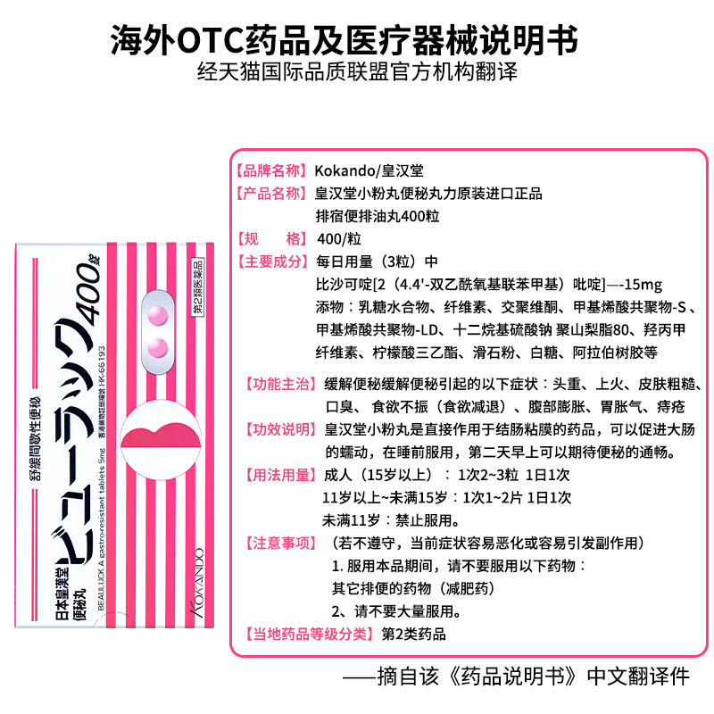 日本皇汉堂小粉丸正品小红粉丸400粒旗舰店便秘润肠通便排毒减肥