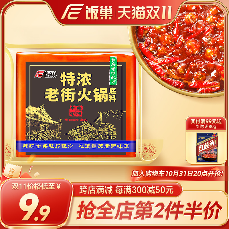 饭巢重庆火锅底料正宗旗舰店特浓老街500g牛油麻辣烫串串火锅底料