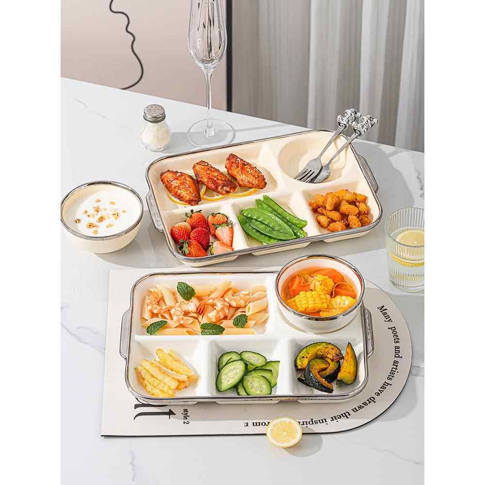 您的位置: 分隔蒸盘陶瓷高档陶瓷分格餐盘一人食大人减肥专用网红月子餐具四