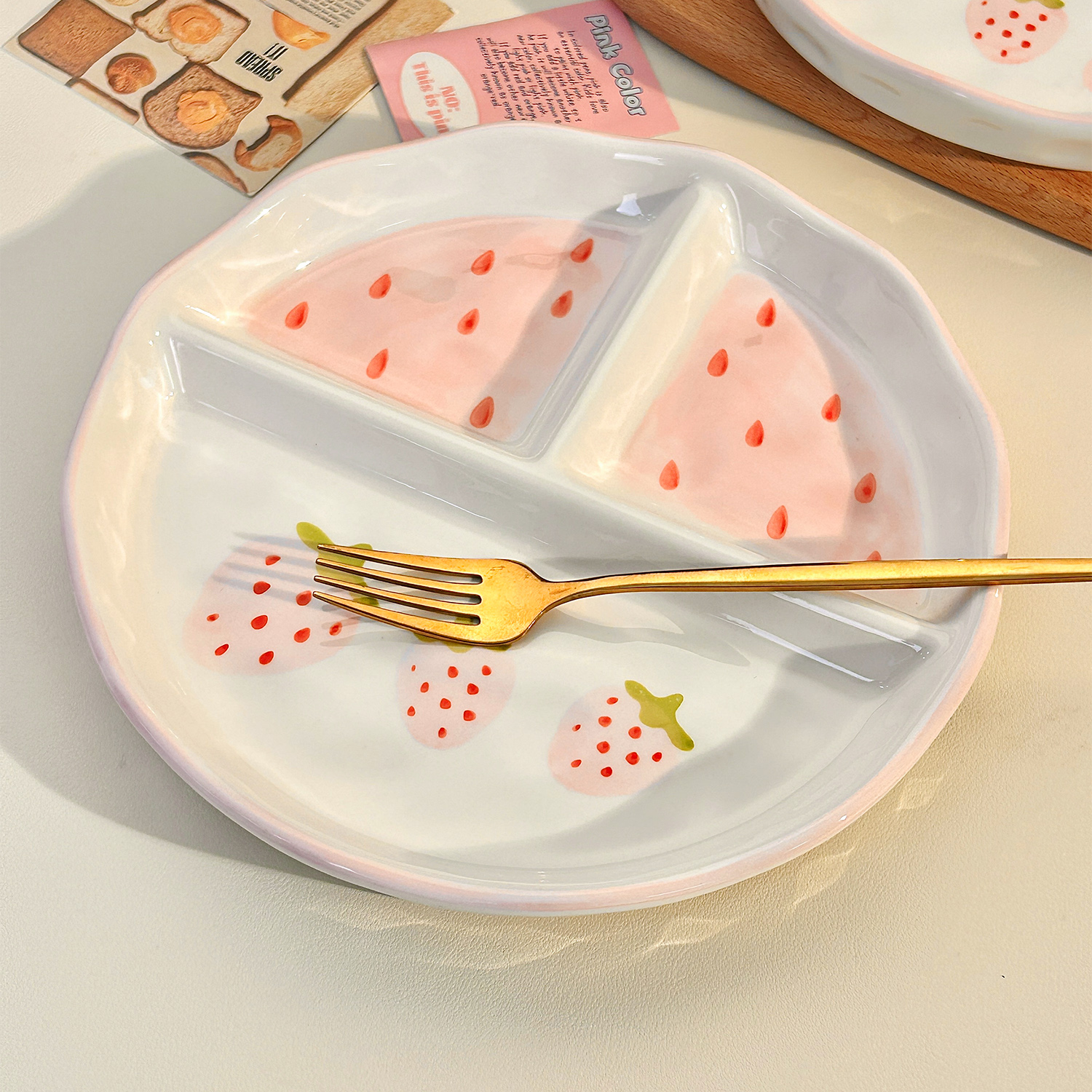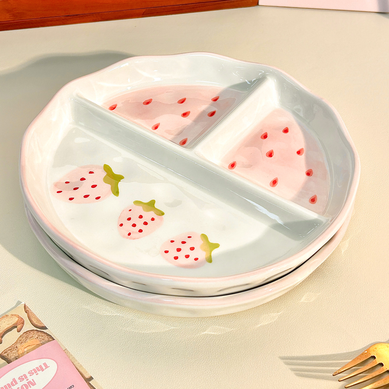 可爱草莓陶瓷分格盘一人食大人减肥专用211减脂定量盘早餐盘家用