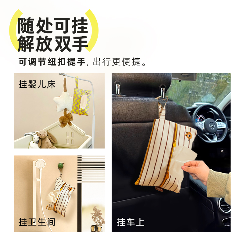 > hugz纸巾包便携防水随行挂袋收纳壁挂式车载安心卫生洗脸巾抽纸盒