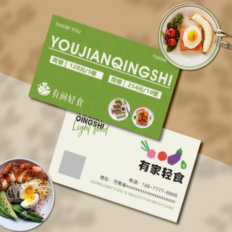 您的位置: 新中式轻食宣传单健身营养餐卡片定制减脂外卖卡月卡减肥餐周卡